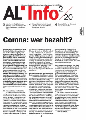 Corona: wer bezahlt? Theoretisch sind vor dem Virus alle gleich. Doch die Realität sieht komplett anders aus. Die Corona-Krise zeigt die gesellschaftliche Ungleichheit wie unterm Vergrösserungsglas. Sie trifft die Menschen, die weltweit und lokal am unteren Ende der sozialen Hierarchie stehen, gesundheitlich und wirtschaftlich am härtesten. Interview mit Pflegefachfrau und Aktivistin Nadine Deringer über das Gesundheitssystem in der Corona- Krise. Albtraum Weisse Schweiz. Andrea Leitner zu den «Black Lives Matter»-Demos in der Schweiz. Christina Schiller zur Coronakrise und den Grundrechten.