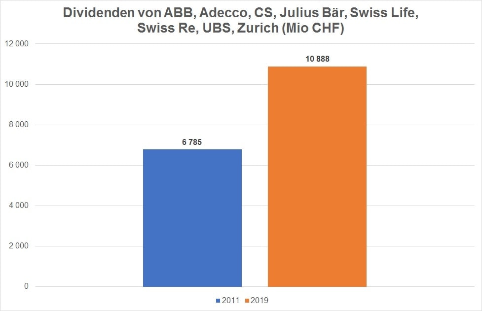 2011 – 2019: Zürcher Börsenschwergewichte steigern Dividendenzahlungen um 60 Prozent