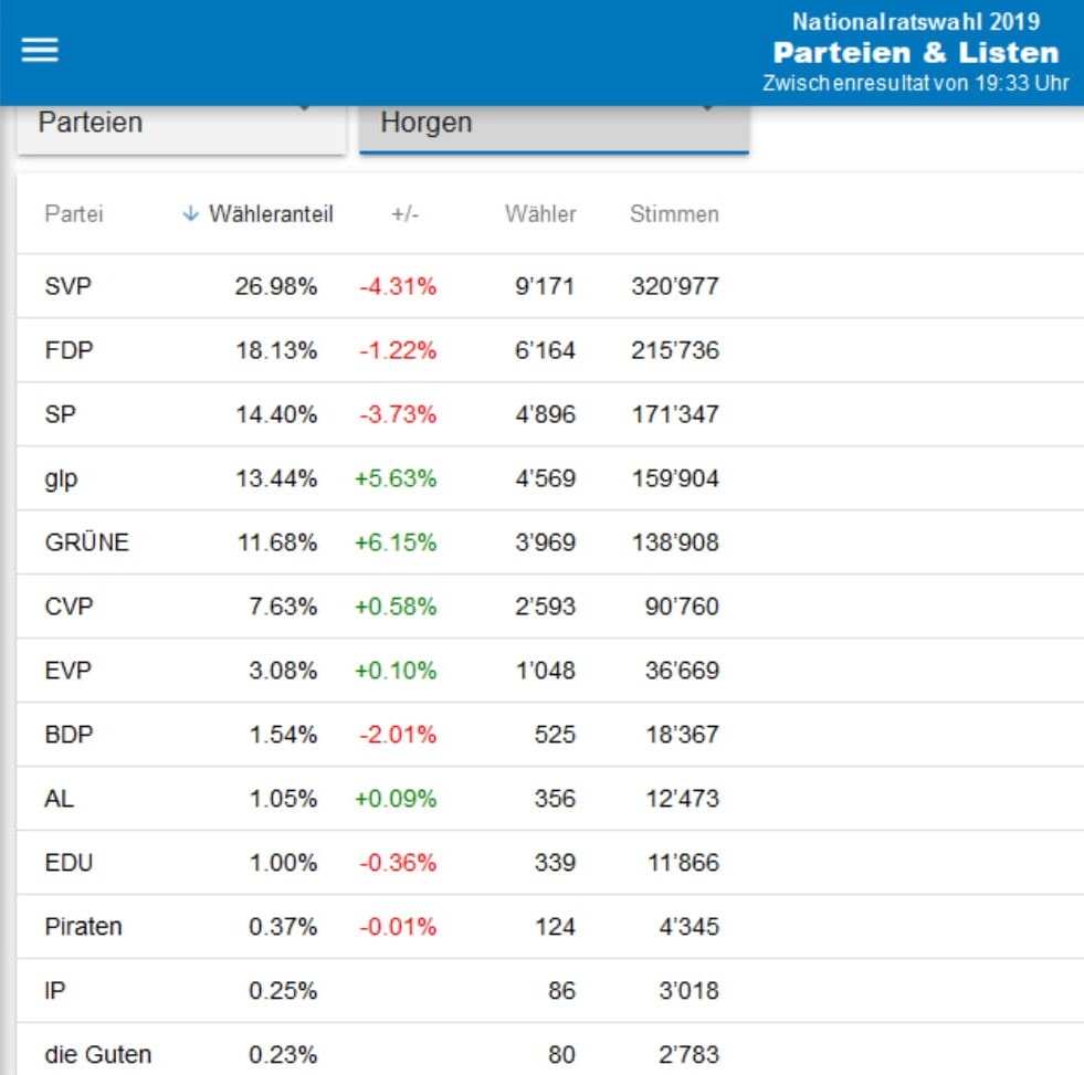 Trotz der erfreulichen und massiven Gewinne der Grünen konnte sich AL Bezirk Horgen auch bei den Nationalratswahlen leicht verbessern.