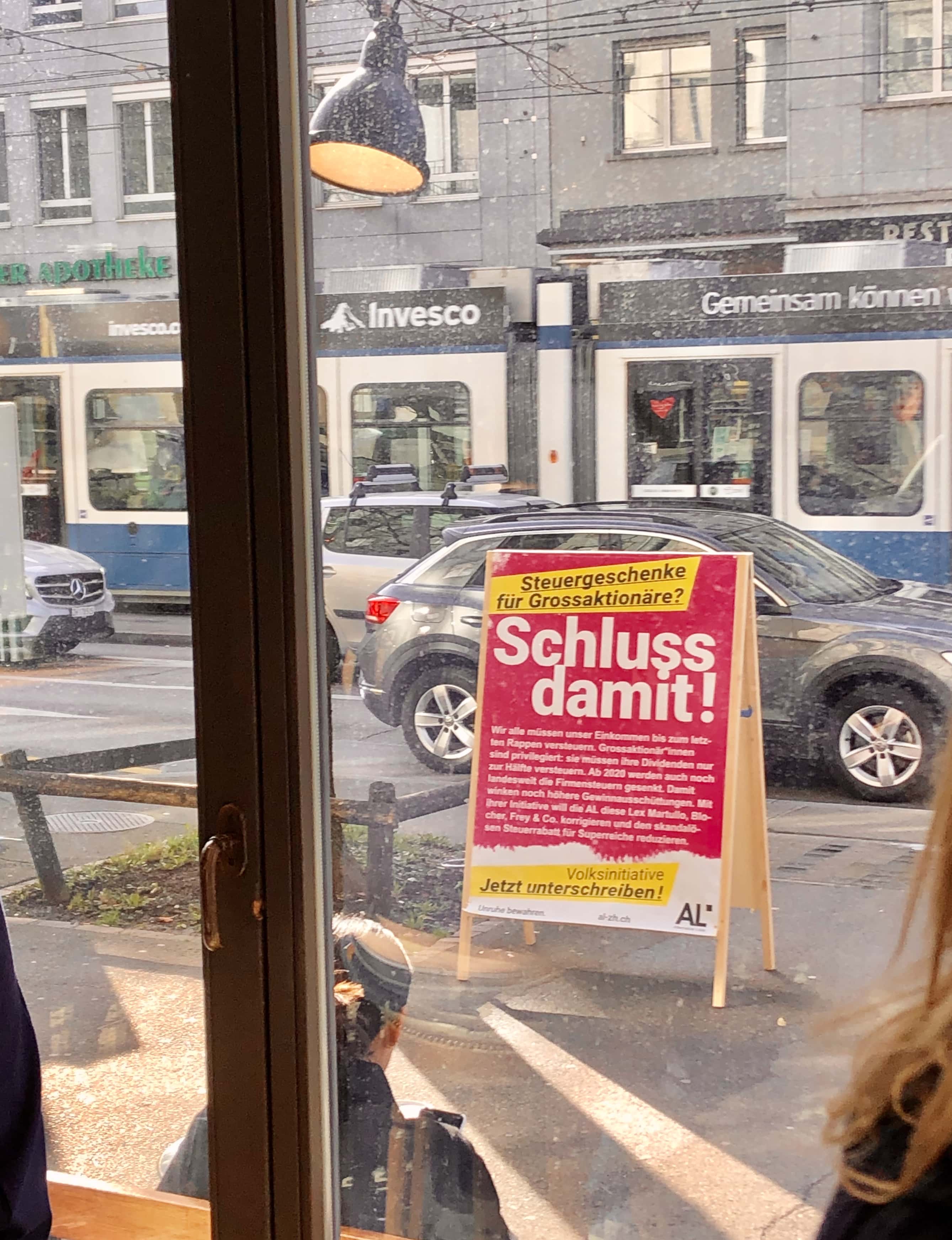 Am Abstimmungswochenende haben gut zwei Dutzend AL-Aktivist*innen in Zürich, Winterthur und Bülach 1’284 Unterschriften für unsere Initiative gegen Steuerprivilegien von Grossaktionär*innen zusammengetragen.