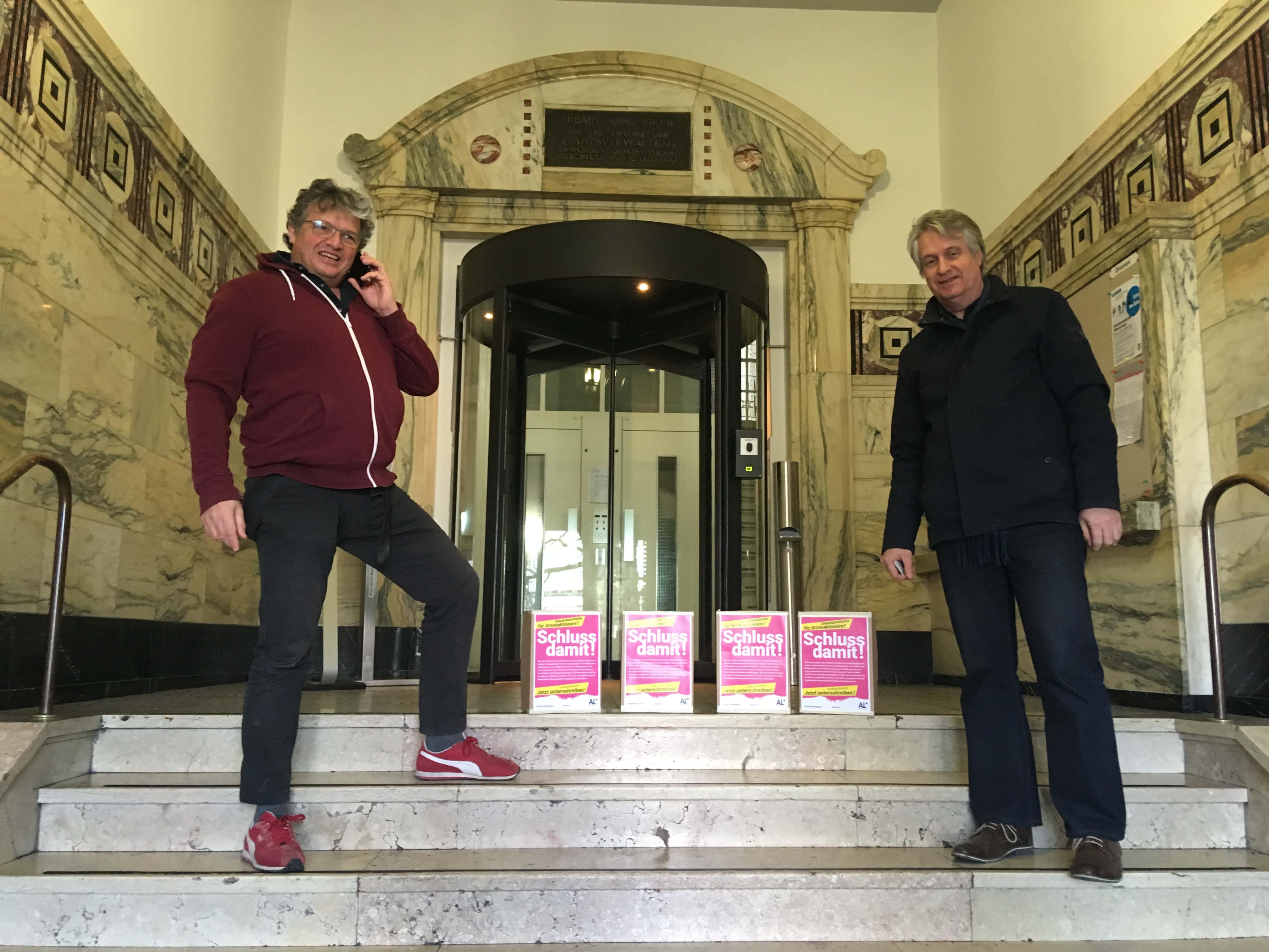 Wir alle müssen unser Einkommen bis zum letzten Rappen versteuern. Grossaktionär*innen dagegen sind privilegiert: seit 2008 müssen sie ihre Dividendeneinnahmen im Kanton Zürich nur zur Hälfte versteuern. Mit ihrer heute eingereichten kantonalen Initiative will die AL diese Lex Martullo, Blocher, Frey, Ringier, Coninx & Co. korrigieren und den skandalösen Steuerrabatt für Superreiche reduzieren. Die AL knüpft damit an ihre erfolgreiche Initiative zur Abschaffung der Pauschalbesteuerung für ausländische Millionäre an.