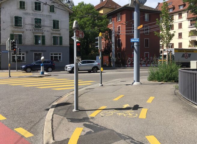 Typisches Bild in Zürich: Veloweg endet im Nirgendwo