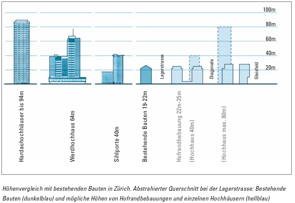 Sogar ein informativer Grössenvergleich der erlaubten 40 – 80m-Hochhäuser mit bestehenden Bauten wurde den Stimmbürger*innen gezeigt: