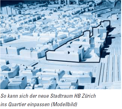Bei der Abstimmung über das AL-Referendum gegen den Gestaltungsplan «Stadtraum HB» für die heutige Europaallee im September 2006 zeigte die städtische Abstimmungszeitung das ins Stadtmodell integrierte Modellbild mit den wuchtigen geplanten Klötzen und Hochhäusern – zwar diskret auf eine Spaltenbreite herunterverkleinert und etwas tendenziös kommentiert, aber immerhin.