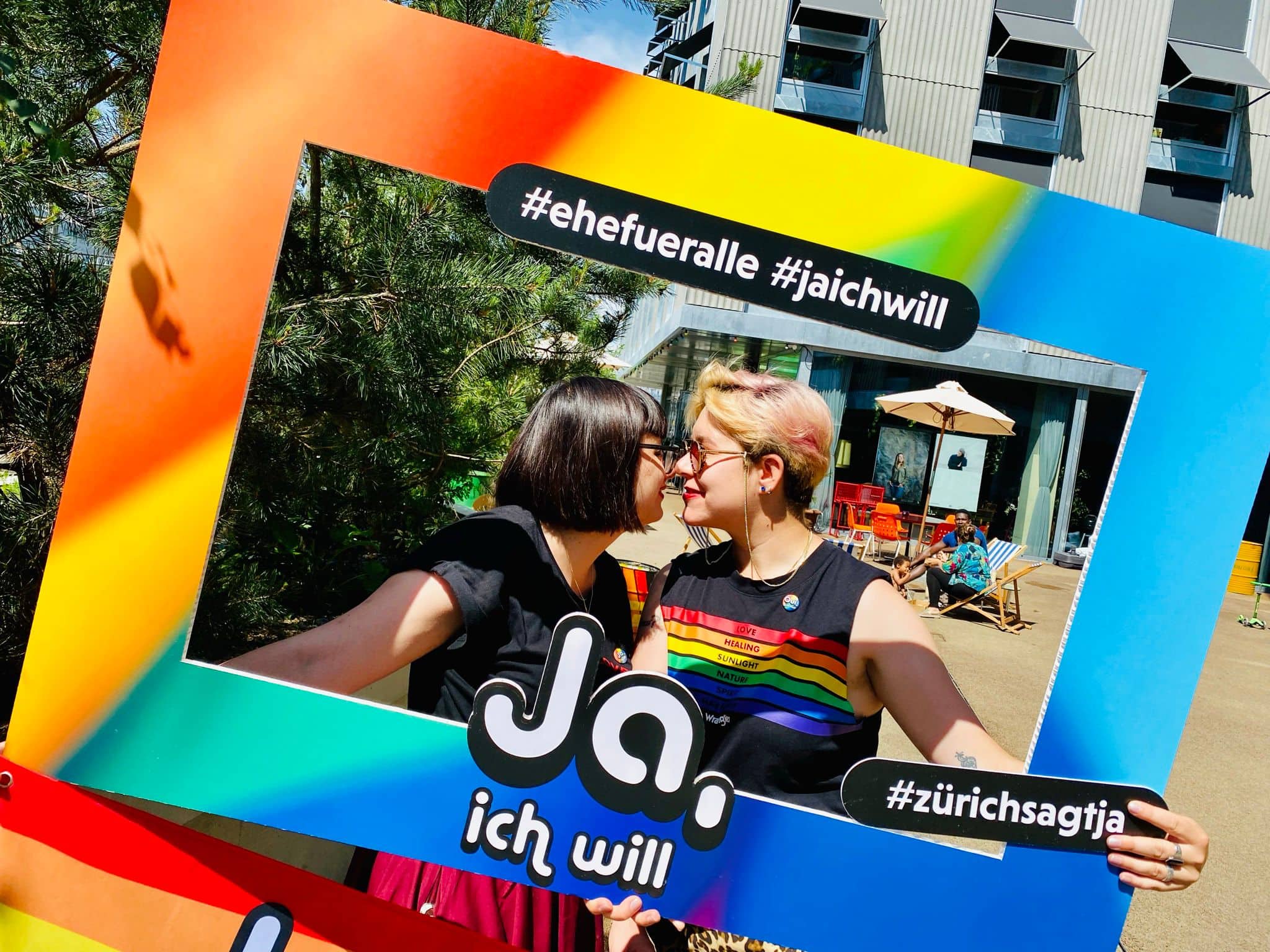 Julia: Wir nehmen oft an Demos teil und engagieren uns in der Community, wir sind Teil des Programmationsteams des queeren Zürcher Filmfestivals Pink Apple. Über diese Verbindung ist das nationale Komitee auch mit uns in Kontakt getreten. Es ist für uns beide aber das erste Mal, dass wir uns in einem Komitee engagieren. Die Mitarbeit im Komitee macht uns Mut und stimmt uns optimistisch. Vor allem seit wir vom Referendum erfahren mussten, ist es bestärkend, mit gleichgesinnten Menschen gemeinsam aktiv zu werden und auf ein kollektives Ziel hinzuarbeiten.