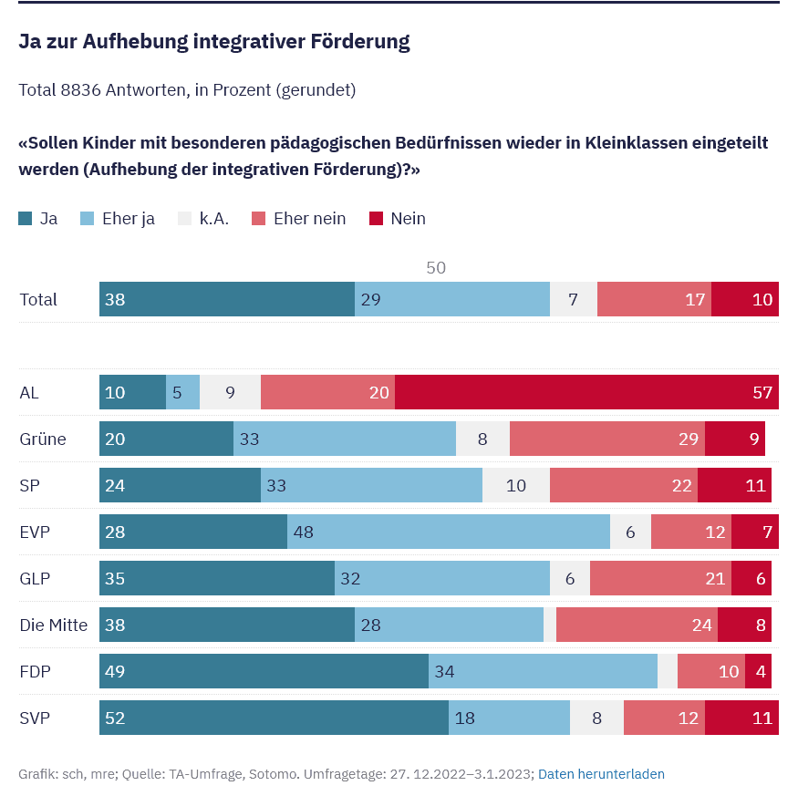 In den letzten Umfragen der NZZ und des Tages Anzeigers folgte die AL-Wählerschaft der Meinung von Nicole Wyss und stellt sich klar gegen Kleinklassen.
