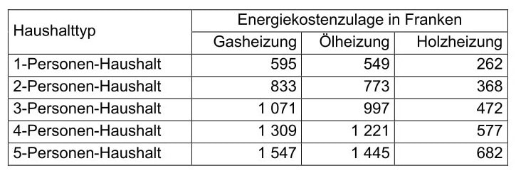 Energiekostenzulage: Kurzinformation auf Deutsch