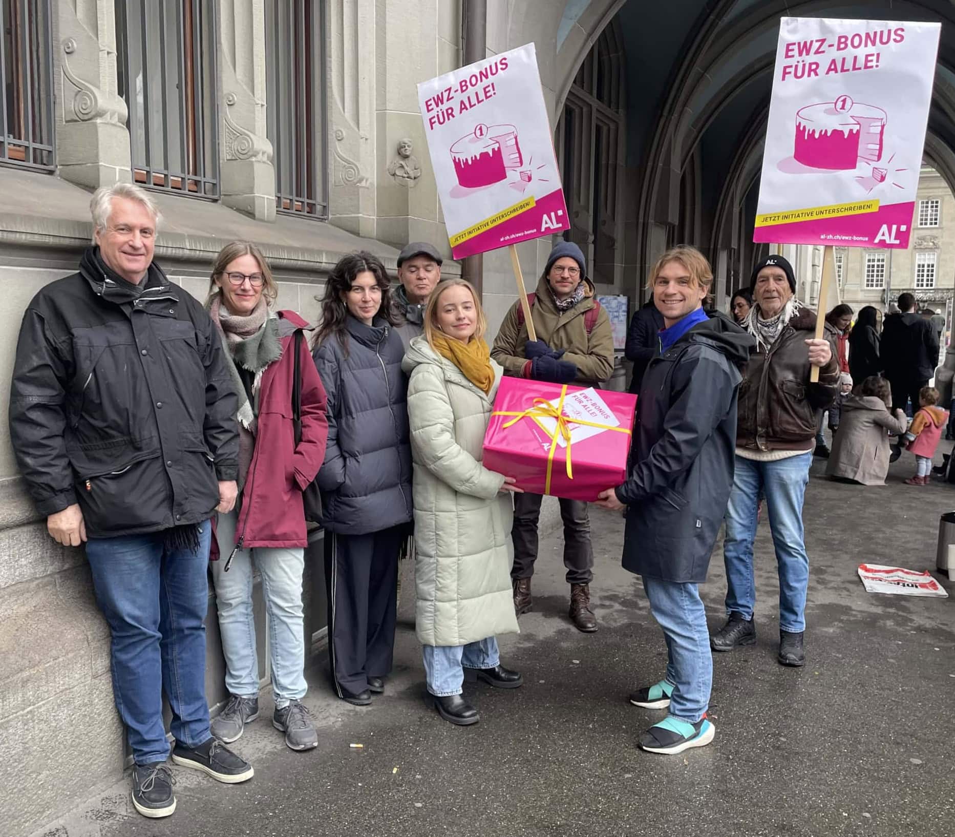 In den letzten zwei Jahren erzielte der städtische Energieversorger ewz rekordhohe Gewinne zwischen 350 und 400 Millionen Franken, die vor allem aus dem Energiehandel stammen. Mit der Volksinitiative verlangt die AL, dass aus dem ewz-Gewinn von 2024 neben der Ablieferung von 80 Millionen Franken an die Stadtkasse ein gleich hoher Betrag an die Kundinnen und Kunden in der Grundversorgung ausgeschüttet wird. Sie haben in den letzten Jahren die regulierten Tarife bezahlt, während Grosskund:innen bis 2021 von den tieferen Marktpreisen profitieren konnten. Der beantragte 80-Millionen-Bonus trägt zur Stärkung der Kaufkraft bei.