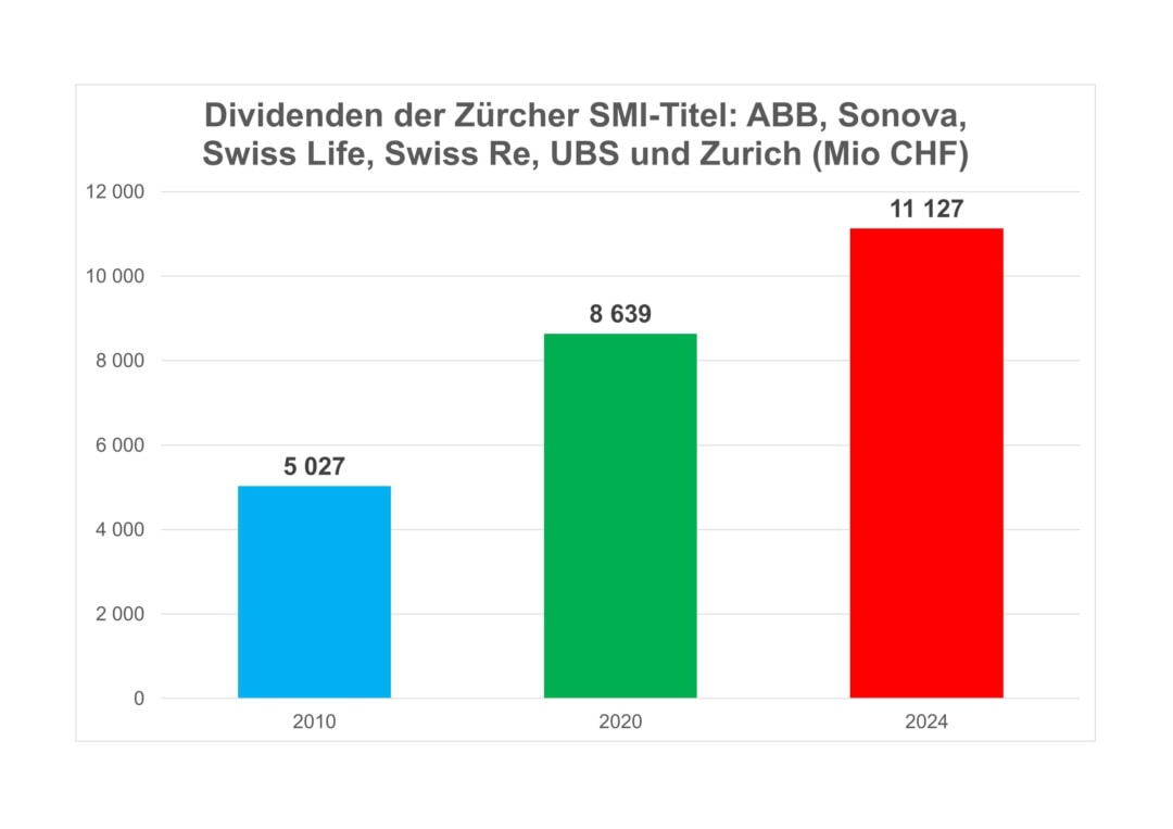 2010 – 2024: Zürcher Börsenschwergewichte verdoppeln Dividendenzahlungen