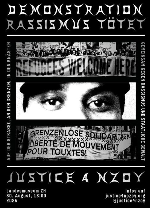 Am 30. August 2025, dem vierten Todestag von Nzoy, findet in Zürich eine Demo gegen Rassismus statt. Gehen wir gemeinsam auf die Strasse und zeigen, dass trotz der aktuellen Entwicklungen Momente der Solidarität und des Widerstands möglich sind – und kämpfen weiter dafür, dass Nzoy nicht vergessen wird!