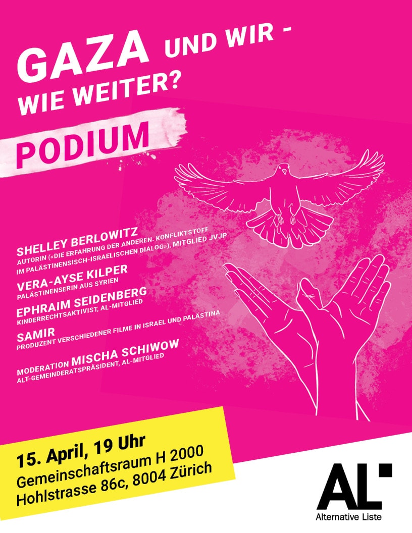 Das Massaker der Hamas vom 7. Oktober und die seitdem andauernde israelische Militäroperation in Gaza haben unvorstellbares Leid für die Menschen in Israel/Palästina gebracht. Wie ergeht es direkt oder indirekt Betroffenen hier in Zürich? Was sind ihre Erwartungen an die politischen Akteure? Diese und weitere Fragen diskutieren wir an einem Podium am Montag 15. April, 19.00 Uhr im Gemeinschaftsraum der Hellmi an der Hohlstrasse 86c, 8004 Zürich.