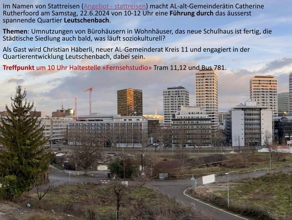 Organisiert von Alt-AL-Gemeinderätin Catherine Rutherfoord, Gast AL-Gemeinderat Christian Häberli.